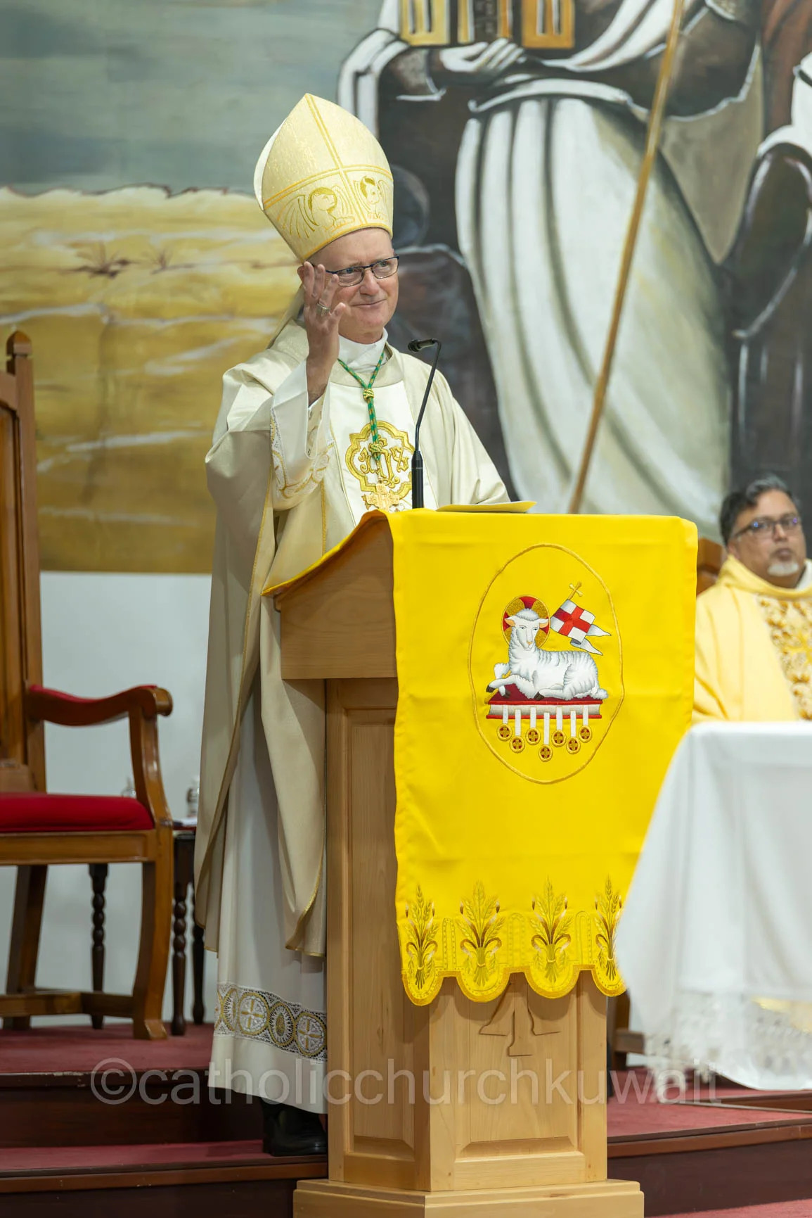 "His Grace, Archbishop Eugene M. Nugent, Apostolic Nuncio to Kuwait, Bahrain, and Qatar, presided over the 2026 Holy Week and Easter celebrations at the Holy Family Co-Cathedral in Kuwait.
